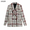 Blazer manches longues Vintage à carreaux pour femmes, vestes Slim manteaux pour femmes, bureau élégant Chic