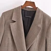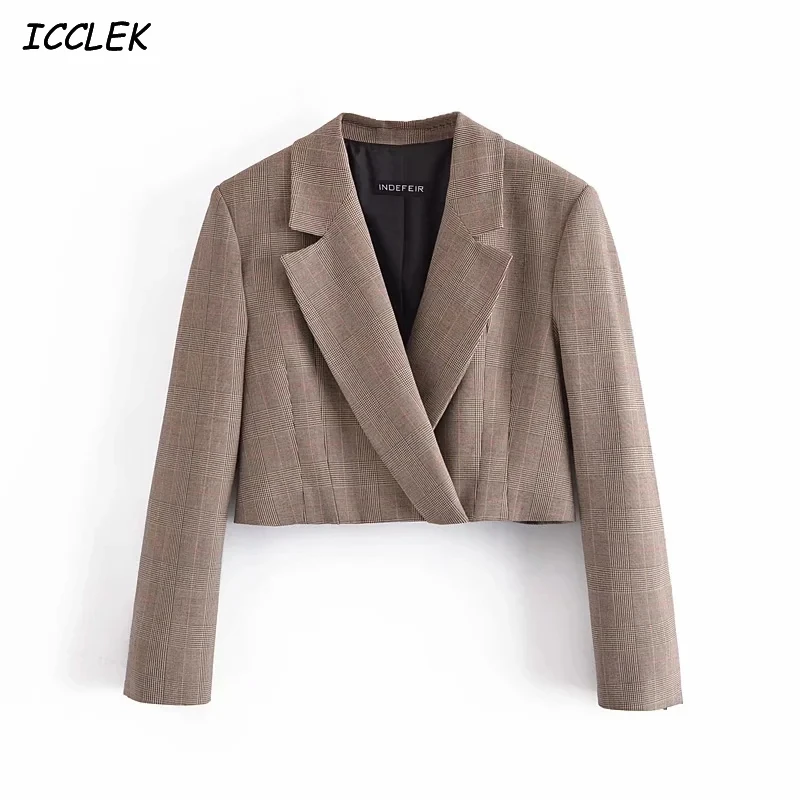 Costume blazer trois quarts à treillis fin pour femme, veste à manches longues, jupe plissée formelle, automne et hiver, 2021