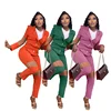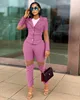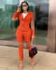 Costume en maille Sexy pour femmes, pantalon épissage élégant, Blazer à manches longues, ensemble pantalon, bureau, V Nevk, survêtement, grande taille