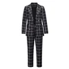 Blazer à carreaux pour femmes, costume deux pièces, manches longues, Double boutonnage, ensemble pantalon, cordon de serrage