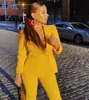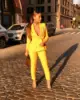 Costume 2 pièces jaune pour femmes, pantalon d'affaires, Slim Fit, vêtements de travail, col en v, Blazer croisé