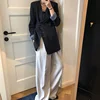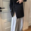 Blazer asymétrique incliné devant, nouveau design d'automne de blogueuse, sens de la mode, veste à rayures fines