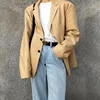 Veste brillante à manches longues pour femmes, nouvelle tendance de tempérament, couleur unie, revers, simple boutonnage, coupe ample, automne et hiver 2021