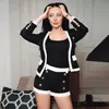 Ensemble deux pièces Sexy à boutons, noir et blanc, manches longues en Tweed et soie brillante assortie, nouvelle collection automne et hiver 2021