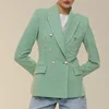 Blazer Slim vert pour femmes, veste de printemps élégante pour bureau, costume Double boutonnage pour dames