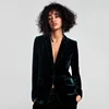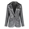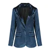 Costume en velours pour femmes, Blazer à manches longues, grande taille, manteau à boutons, élégant, ajusté, vêtements noirs à la mode, automne