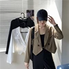 Veste de costume à col rabattu pour femme, haut court à manches longues avec bouton unique, vêtement à la mode, vente en gros, nouvelle collection 2021