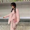 Costume chaud pour femmes, ensemble deux pièces pour bureau, couleur unie, pantalon élégant, Blazer à manches longues, ensemble décontracté, pantalon ample, veste de travail