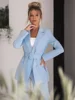 Costume 2 pièces bleu ciel pour femmes, pantalon avec ceinture, sur mesure, Tuxedos de soirée, vêtements de travail formels pour occasions de mariage