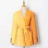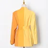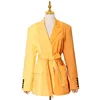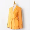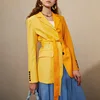 Veste jaune à la mode, nouvelle collection automne 2021, couture, couleur contrastée, cravate à la taille, costume de ville court