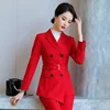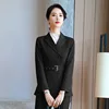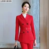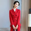 Costume d'affaires pour femmes, Blazer à ceinture à Double boutonnage et pantalon, couleur unie, noir, rouge, tenues formelles pour femmes, tenue de travail de bureau, costumes
