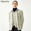 Ollyeacha – costume rétro à simple boutonnage pour femme, faux Blazer noir deux pièces, à manches longues, vêtement d'extérieur du bureau britannique