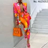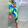 Costume deux pièces à manches longues pour femme, blazer imprimé à motif élégant et longue salopette, à la mode, collection automne 2021