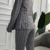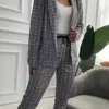 Costume gris clair à carreaux slim à revers pour femmes, nouvelle mode 2021