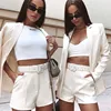 2021NEW Deux Pièces Blazer Ensemble Femmes Bureau Ensemble 2 Pièces de Travail Élégant OL Blazer Et Short Manteau Femme Sexy Chic Costume 2021 D'été
