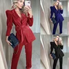 Costume en cuir pour femmes, pantalon, nouvelle mode, costume de bureau, 2 pièces, Blazer, rouge, bleu, noir, nouvelle collection automne 2021