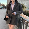Veste à carreaux à col cranté pour femme, veste d'automne à simple boutonnage, poches décontractées, costumes féminins, 2021, nouveauté