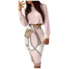 Tenue élégante pour femmes, haut à manches longues et carreaux, imprimé, cordon froncé, à la mode, 2021