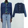 Costume de style britannique pour femmes, Blazer Vintage à manches longues et à simple boutonnage, doublure en Tweed, vêtements d'extérieur Chic, 2021