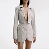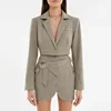 Ensemble assorti Blazer et jupe pour Femme, Style anglais, nombril exposé, court, Empire, ensemble deux pièces