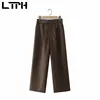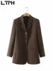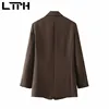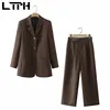LTPH – ensemble deux pièces vintage pour femmes, pantalon camel, tenue de bureau, blazer slim, pantalon droit, décontracté, nouvelle collection printemps 2022