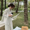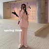 Lucky A – costume deux pièces pour femmes, tenue de bureau, blanc, rose, Blazer élégant, ensemble décontracté, pantalon ample, veste de travail, 2021