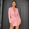 Vêtements de bureau pour femmes, blazer croisé, manteau Vintage à manches longues, poches, vêtements d'extérieur chics, à la mode, 2021