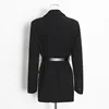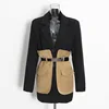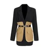 Blazer noir contrasté pour femmes, veste à manches longues, coupe ample, à la mode, manteaux épissés avec ceinture, nouvelle collection printemps automne 2022