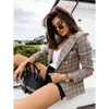 Veste à carreaux pour femmes, manches longues, bouton en métal, veste de costume Double boutonnage, tempérament décontracté, mode d'automne, petit costume