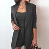 Ensemble 3 pièces Blazer et short pour femmes, costume de bureau avec nœud solide, haut court à taille basse, élégant, mode décontractée, été
