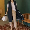 Veste en coton et lin pour femmes, blazer décontracté, gilet à un bouton, poches fendues, hauts mi longs sauvages, nouvelle collection été