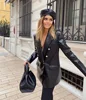 Blazer en cuir noir pour femmes, sur mesure, mode Cool, Vintage, à revers, veste pour fille, à manches longues, poche, manteau 1 pièce