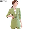 Boliyae – costume avec jupe pour femme, Blazer à carreaux, Double boutonnage, décontracté, manches longues, automne et hiver