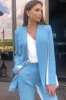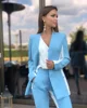 Costume 2 pièces pour femmes, bleu, blanc, Blazer + pantalon, sur mesure, pour les invités d'affaires, pour le bal de fin d'année