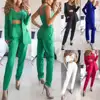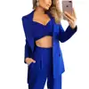 Costume 3 pièces pour femme, Blazer Slim Fit, élégant, couleur unie, tenue de bureau, ensemble 3 pièces, haut court, veste et pantalon, automne
