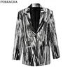 Foreacha – Blazer noir blanc imprimé Graffiti, manteau à boucle unique, costume de travail pour femme, haut Chic, ample, printemps automne 2022