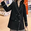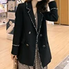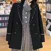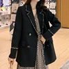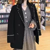 Cardigan mi long à col de costume pour femmes, veste de costume rétro, ample et décontractée, à la mode