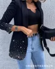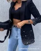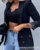 Blazer imprimé noir à manches longues pour femmes, nouvelle mode automne 2021, taille en diamant, élégant
