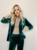 Blazer en velours vert à manches longues pour femme, coupe ajustée à revers, nouvelle mode automne et hiver 2021