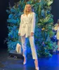Costume élégant blanc pour femmes, Blazer 2 pièces + pantalon crayon, uniforme formel, fête de bal, veste sur mesure avec ceinture