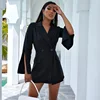 Manteau Sexy pour femme, nouvelle chemise à la mode, solide, col en v, bouton à la taille, Blazer, vêtements d'hiver, automne 2020