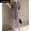 Robe Blazer Chic pour femmes, ensemble jupe longue en maille à volants, veste Double boutonnage + ceinture péplum, Corset, mode printemps 2022