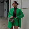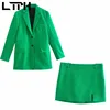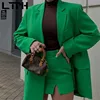 LTPH – ensemble deux pièces pour femmes, blazer élégant à manches longues, tenue verte, sexy, taille haute, jupe fendue, nouvelle collection printemps 2022