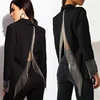 Costume 2 pièces pour femmes, Blazer à perles, pantalon évasé, Sexy, dos ouvert, soirée, bal, sur mesure, vêtements de rue