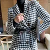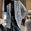 Blazer pied de poule en laine pour femmes, manteau de costume ample, grande taille, pour bureau, gris, décontracté, costume à carreaux Slim, nouvelle mode