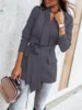 Manteau de costume à lacets pour femmes, solide, Blazer de bureau décontracté à revers, vêtements d'extérieur, à la mode, automne 2021