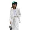 Costume 2 pièces à rayures blanches pour femmes, Blazer ample à Double boutonnage, pantalon à jambes larges, ensemble sur mesure à la mode pour dames, manteau de grande taille