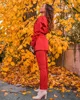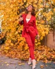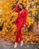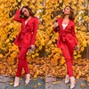 Ensemble 2 pièces rouge pour femmes, veste Streetwear avec ceinture, col en V profond, robe de bal sur mesure