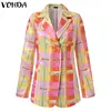 VONDA – manteau de costume à manches longues pour Femme, vêtements d'extérieur, à la mode, à revers, à grille, veste imprimée, surdimensionnée, Blazer élégant