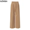 VONDA – Blazer à manches longues pour femmes, ensemble pantalon Palazzo, couleur unie, manteaux de bureau amples, costumes pantalon taille haute, 2 pièces, 2022